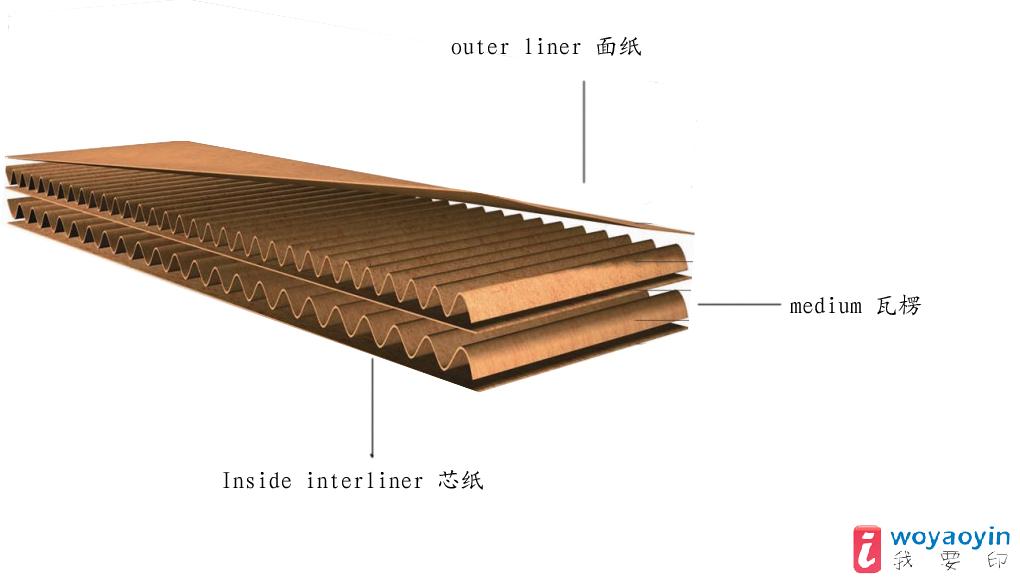 瓦楞纸板由至少一层瓦楞纸和一层箱板纸粘合而成,具有较好的弹性和延伸性。主要用于制造纸箱、纸箱的夹心以及易碎商品的其他包装材料。根据不同组合,瓦楞纸板可以分为下列5种类型: